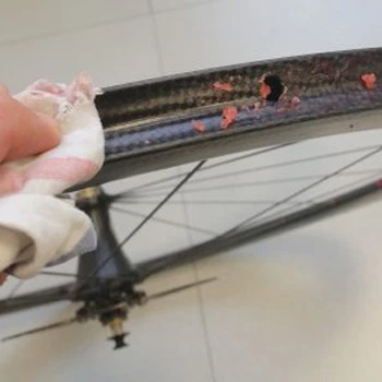 Carogna Remover, thanks to its high viscosity, can be spread on the rim gluing surface, where mastic is, with a brush. Being red, you will clearly see where it is and spread it evenly on the whole glued surface.