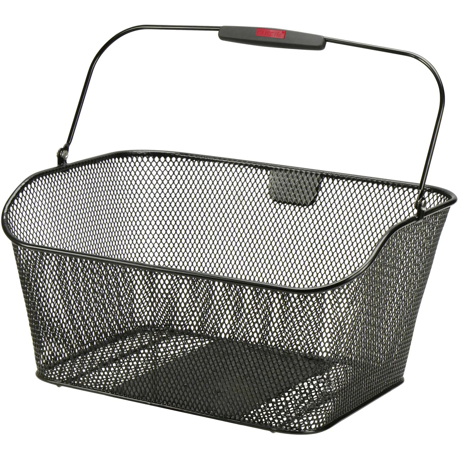 Inexpensive rear bike basket in landscape format. Equipped with comfortable carrying handle.