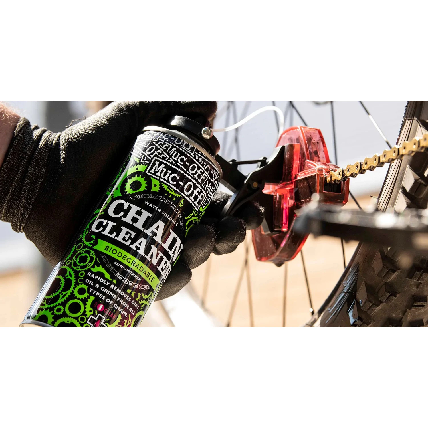 The Chain Doc banishes grime from bicycle chains with minimal effort. The mechanism works by clipping over the chain and combining heavy-duty rotating brushes with the awesome power of our Chain Cleaner, bringing your chain back to life! It works in seconds… 19 to be exact. The kit comes with a can of Muc-Off Chain Cleaner to use with the Chain Doc device, making it ready for cleaning straight out of the box! The 400ml Chain Lube can also be attached to the Chain Doc for mess free lubrication.