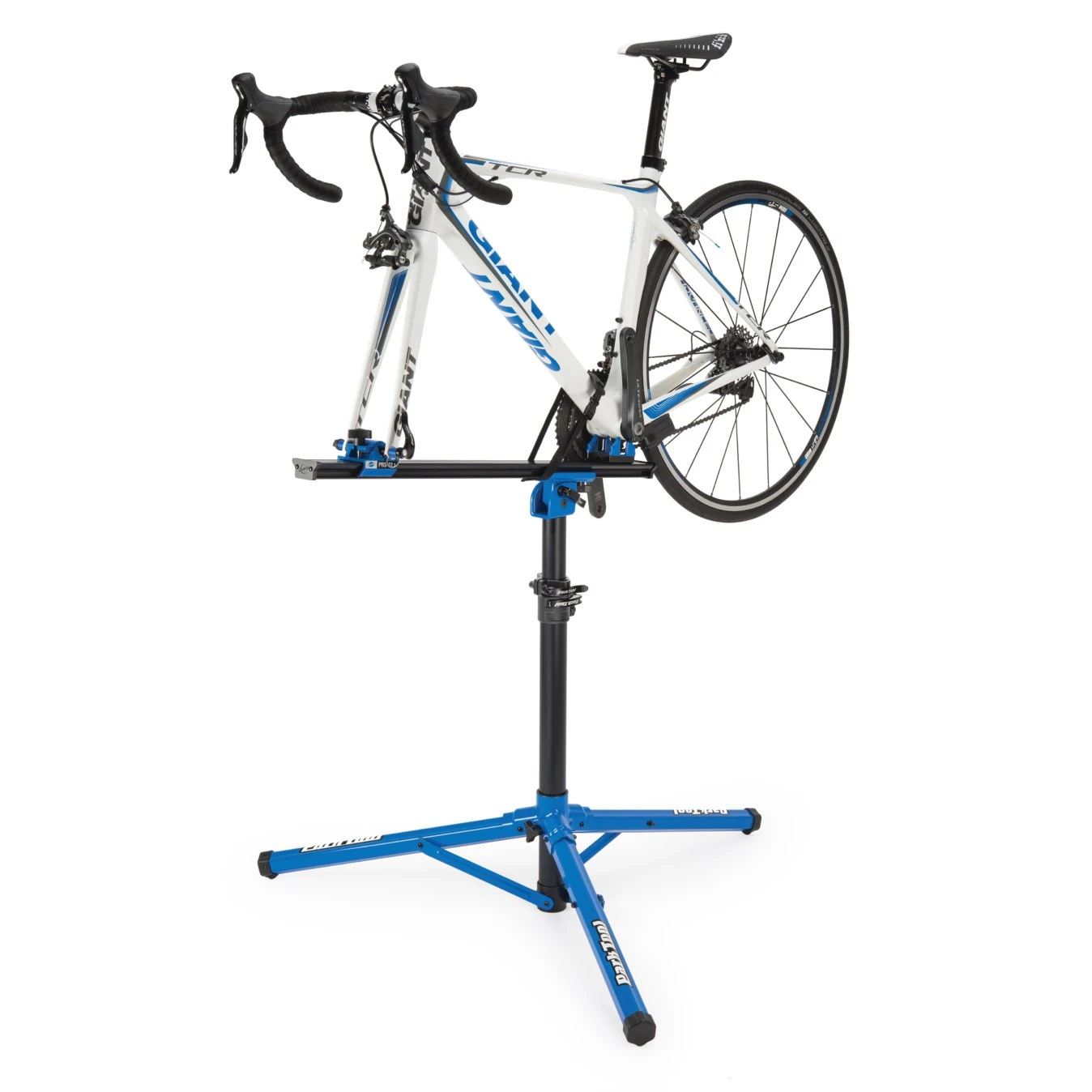 Originally designed for professional Pro Tour mechanics. The PRS-22 firmly holds any bike without clamping the frame or seat post by supporting the bottom bracket then locking either the front or rear dropouts. Works with any style axle system, including quick release and all sizes of thru-axles without cumbersome adaptors. Ideal for cleaning and general repair work, the PRS-22 features a solid tripod base and folds compactly for storage or transport.