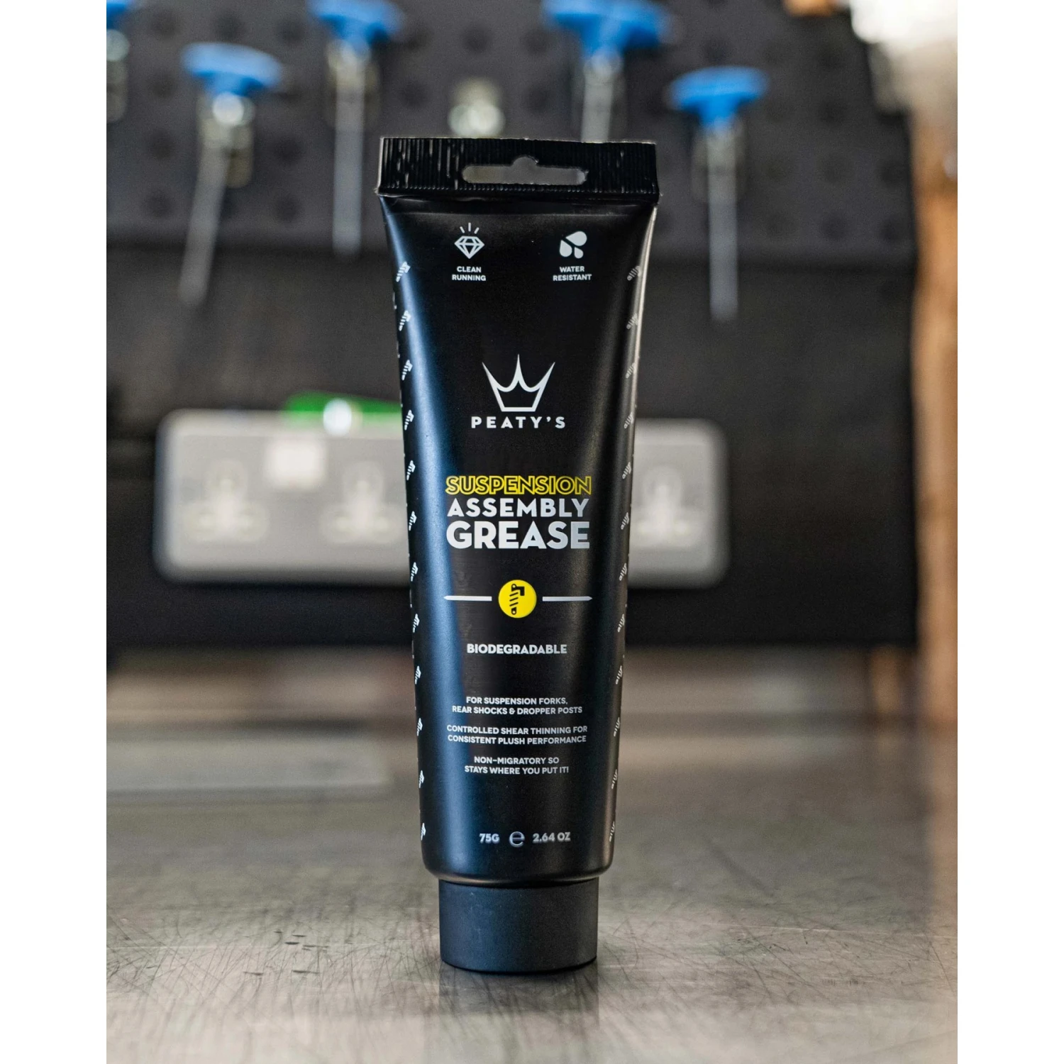 Peaty’s suspension grease is a lithium-free grease specifically developed for use in suspension forks, rear shocks and dropper seatposts.