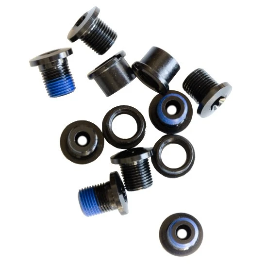 Chainring bolts set made from aluminium. 12 piece set consisting of 4x nuts and 4x torx bolts each for outer and middle chainring.