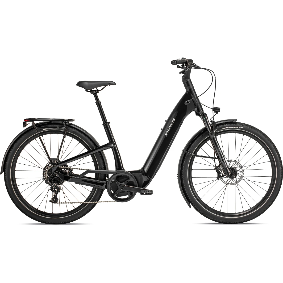 Equipped with Specialized DRYTECH mudguards, LED front and rear lights and HD rack with up to 27kg load capacity. The rack is compatible with child seats and matching trailers.