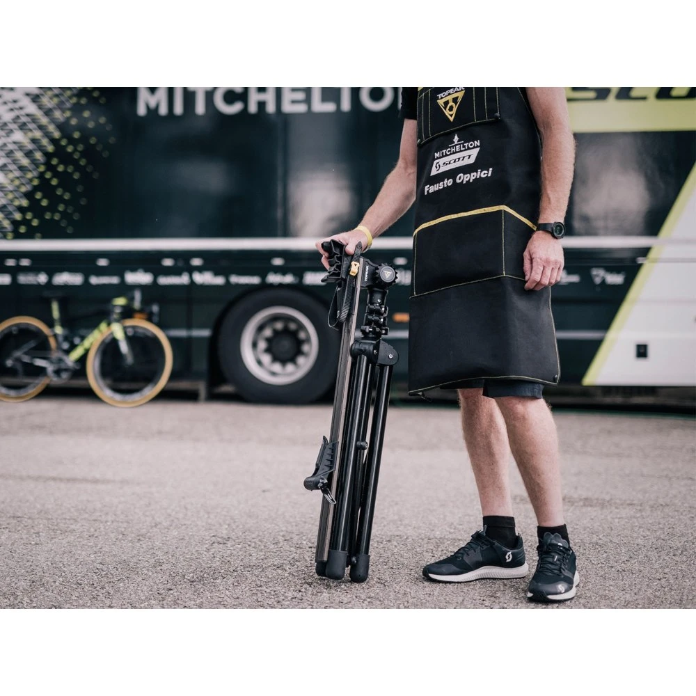 A compact and lightweight foldable workstand with unique 4-way adjustment and solid base for home shop, race day or events. Accepts bikes with quick-release fork or 12 x 100 mm, 15 x 100 / 110 mm, 20 x 110 mm thru-axle forks.