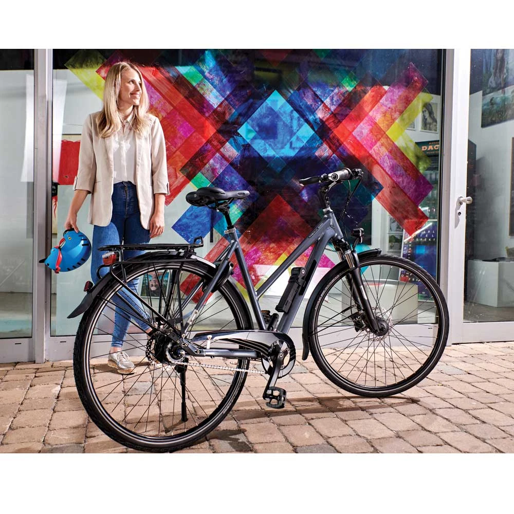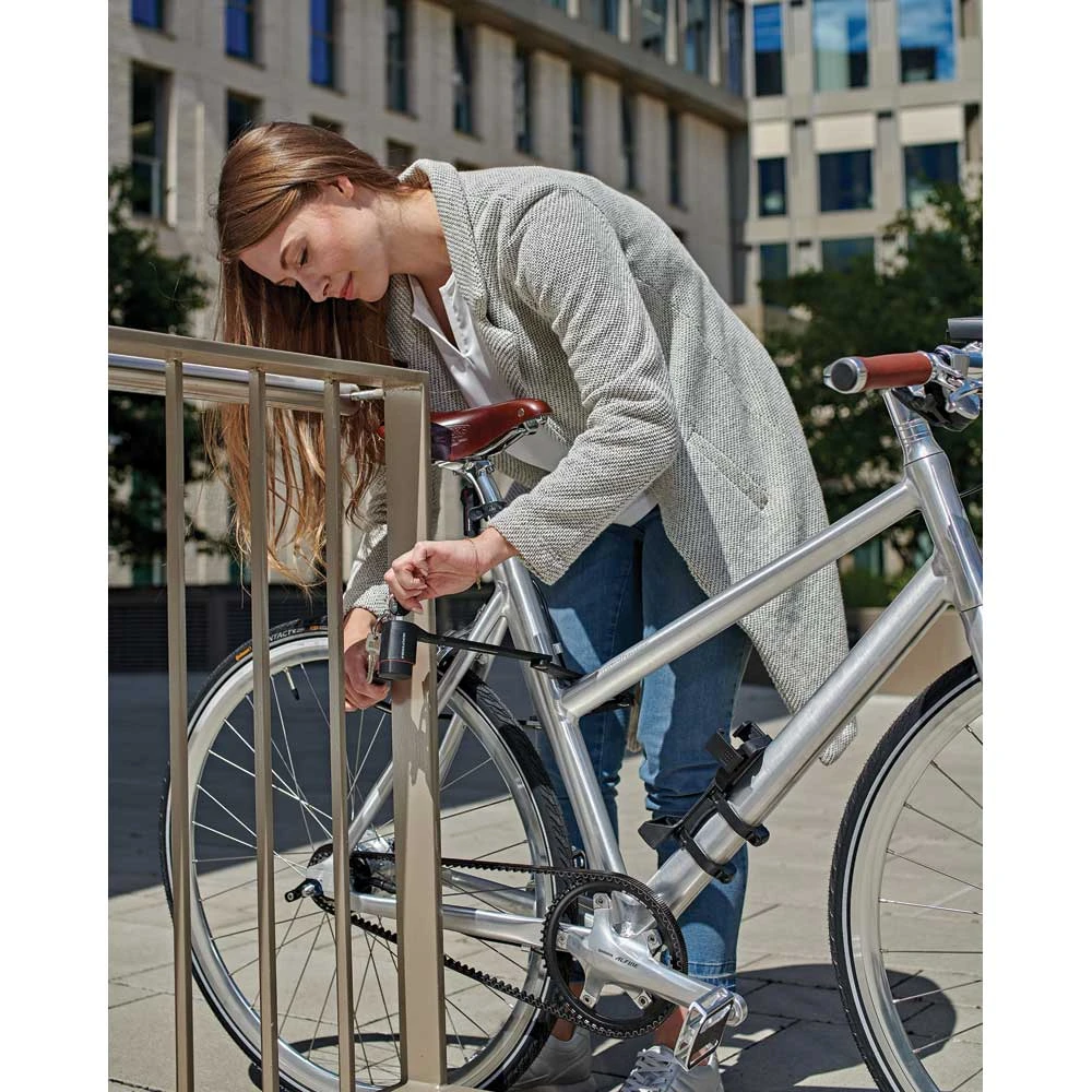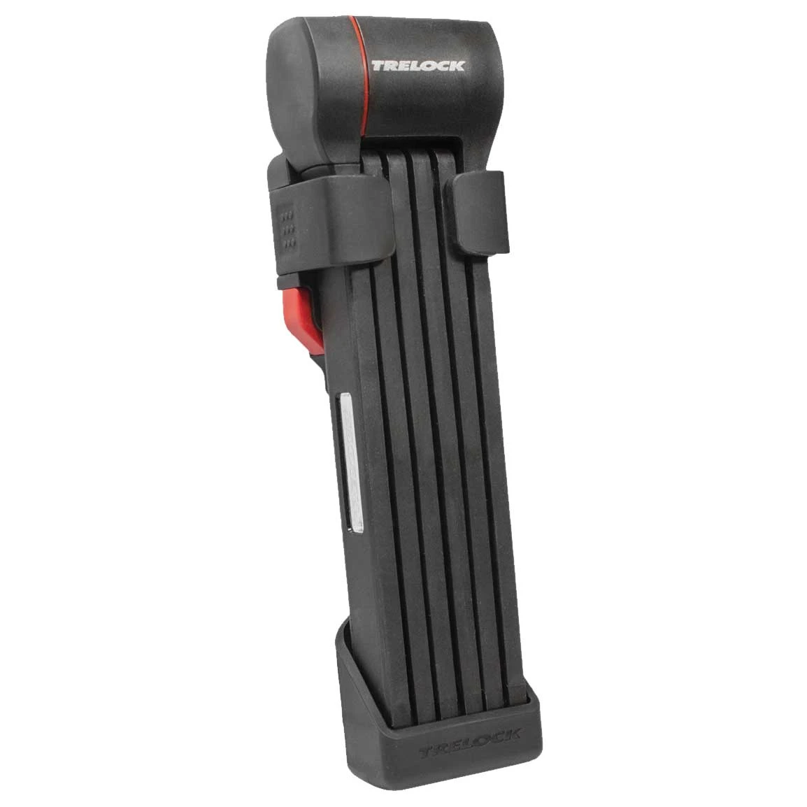 The FS 480 COPS® in the new TRELOCK look, is the compact new addition to the popular COPS folding lock series. The rubberized links made of hardened steel can be unfolded up to 1.00 m in length. Locking a bike to a stationary object is even easier. For convenient locking, the FS 480 COPS® is equipped with a 360 degree rotatable insertion area on the lock head and a reversible key. The IN-X® cylinder is protected from dust and dirt by a cover. The 100 cm version comes with the new X-PRESS bracket. The new locking mechanism of the X-PRESS holder makes it even easier to remove and insert the lock. To remove the lock, press the red button and the lock is released. To secure the lock in the bracket again, simply press the brackets together.Â