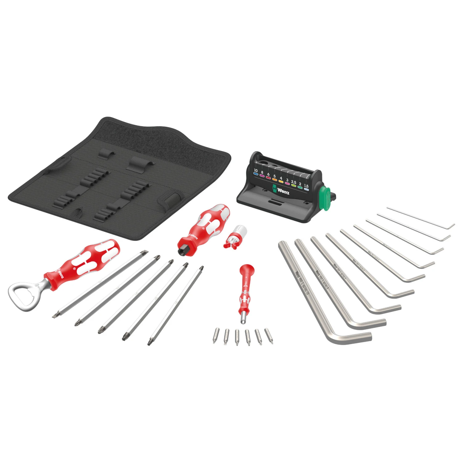Also in 2023 Wera spreads pre-Christmas joy and has been inspired by the red and white coat of Santa Claus for the tool design this time. The is the perfect gift for the pre-Christmas season. A unique and innovative mix of screwdriving tools and accessories for 25 screw profiles. 9 chrome-plated angle wrenches with Hex-Plus profile against round-turned screws provide a solid assortment of tools. A special exclamation mark is set by the practical storage in the rack for placing on the table or mounting on the wall. On top of that, the rack contains a clever removable magnetizer that can be used to magnetize (and demagnetize) screws and also tool tips. This eliminates the hassle of holding the screw with a second hand. Also included are 5 double-sided screwdriver bits with matching handles. Thus, up to 10 different profiles can be screwed. Especially useful for electronic engineers, precision mechanics and model makers is the micro bit holder with the associated 6 micro bits, which make working with very small screws a breeze. Of course, a nice bottle opener is included again this year.