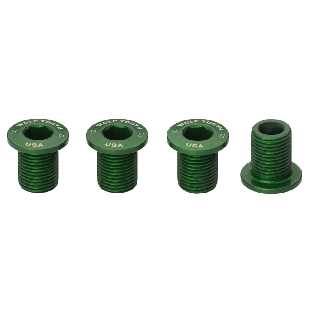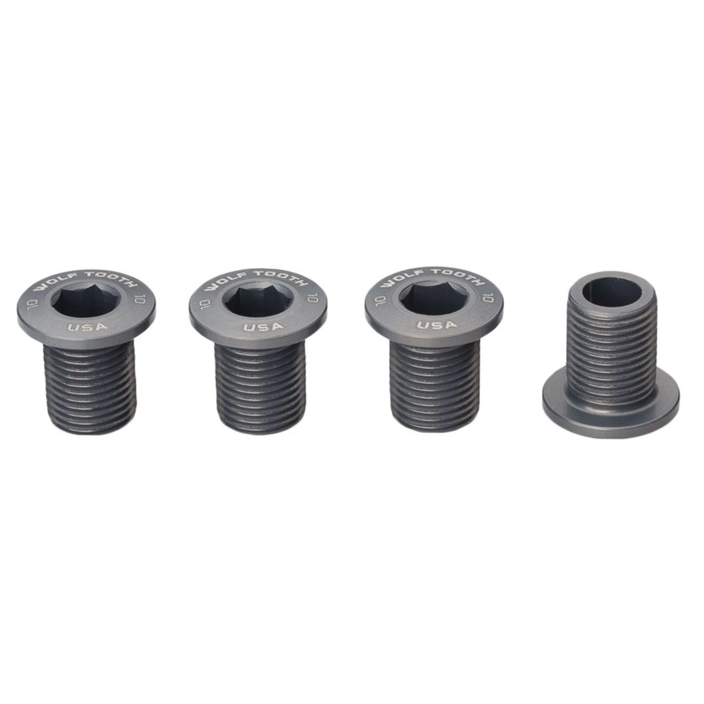 Wolf Tooth 10 mm chainring bolts for use with threaded chainrings. These work great with Wolf Tooth or any other brand threaded M8 x 0.75 chainrings.