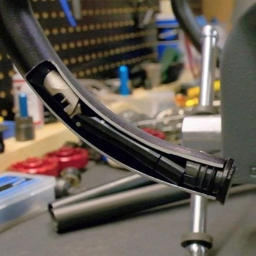Durable precision-machined aluminum end caps. - Custom fit rubber flap can be trimmed to fit in smaller diameter bars.