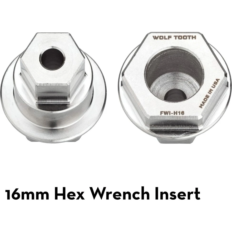 The ultralight 16mm Hex wrench insert is suited for Race Face Cinch aluminium spindle bolts, frame pivots and other 16mm hex applications.